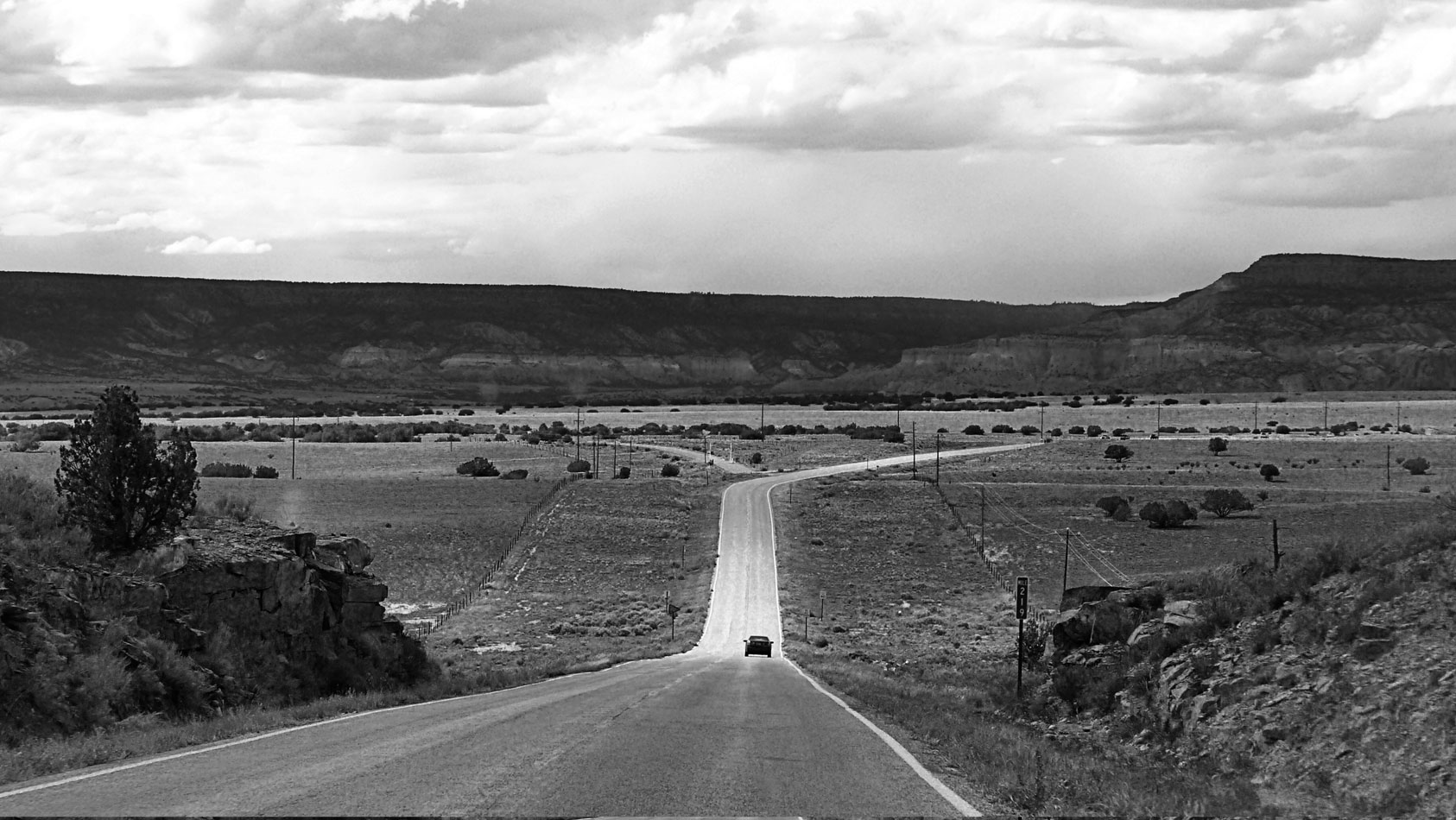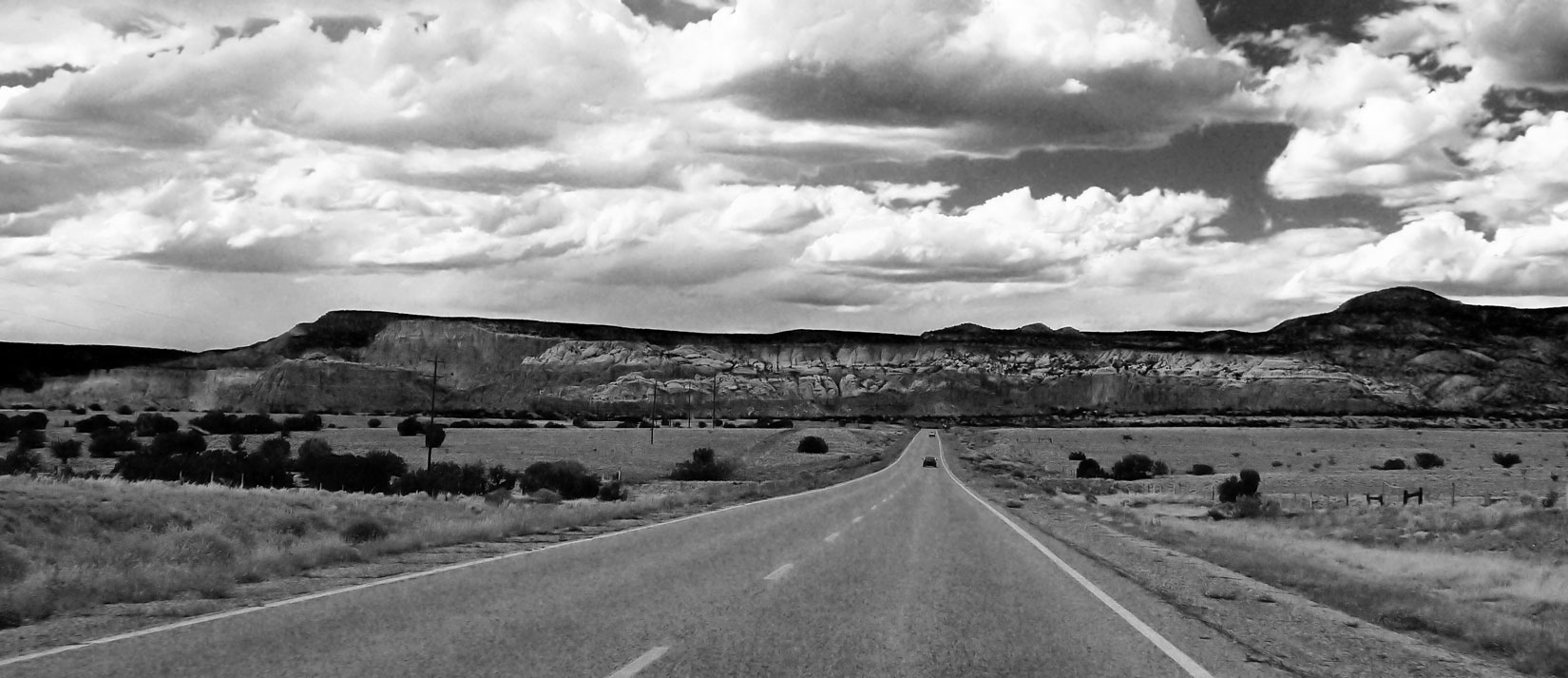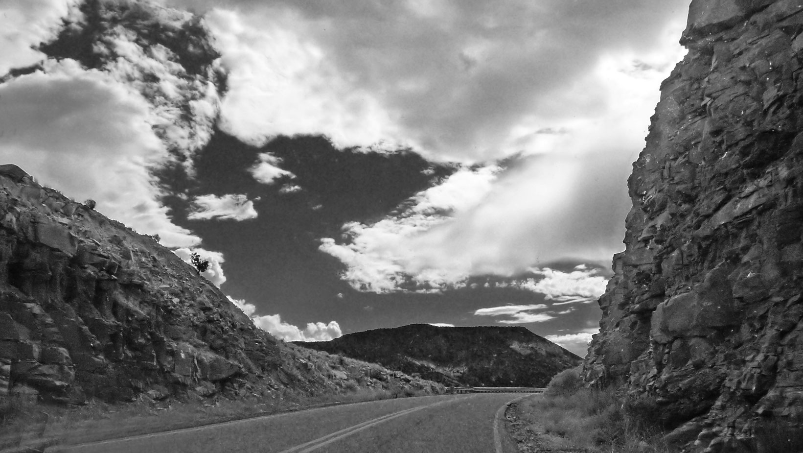 We took a short day trip today into Espanola for a few supplies. As a sort of photographic exercise, I took pictures from the car. Shooting out the window of a car speeding along at 60 mph doesn't always get you the best results, but they are interesting . . .